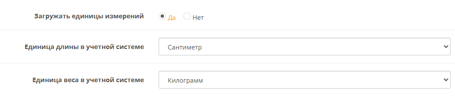 Также нужно установить единицы измерения длин и веса в 1С, при обмене если они отличаются от настроек сайта, то будет произведен пересчет.