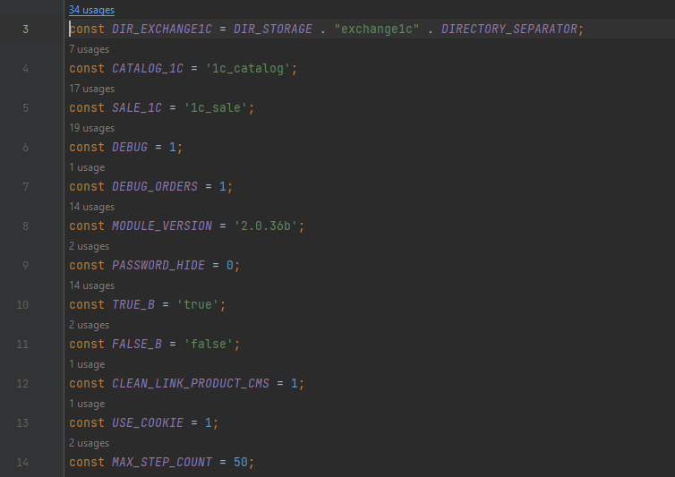 Теперь про уровень отладки, разблокировать настройку можно в файле контроллера находящегося в /admin/controller/extension/module/exchange1c.php. Откройте его через FTP или SSH и в самом начале файла увидите настройку констант. Установите DEBUG = 0 чтобы разблокировать уровень логирования, также изменится и вывод информации в журнал. Про остальные настройки читайте документации к разделу.