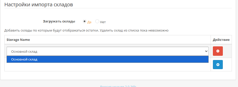 После установки цен, перейдите во вкладку «Каталог» и в самом низу будет настройка складов, если вам нужно отображать общий остаток только с определенных складов, то добавьте нужные склады в таблицу. Если нужны все остатки то можно не заполнять таблицу, оставьте пустой.